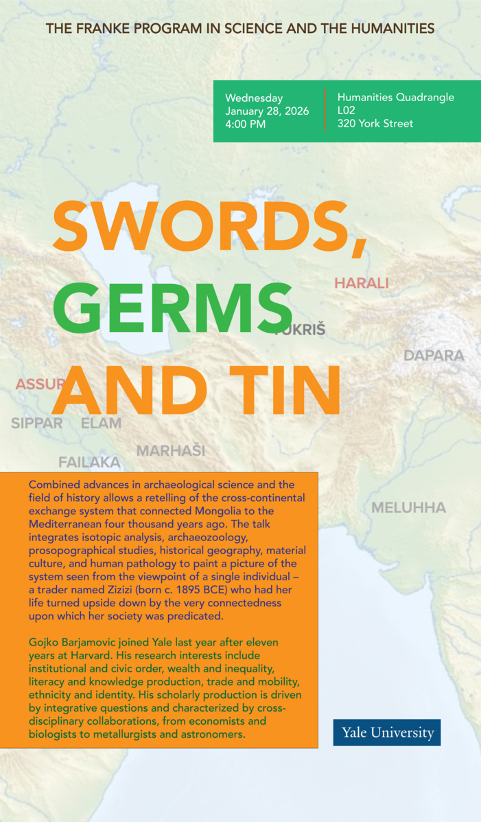 Gojko Barjamovic joined Yale last year after eleven years at Harvard. His research interests include institutional and civic order, wealth and inequality, literacy and knowledge production, trade and mobility, ethnicity and identity. His scholarly production is driven by integrative questions and characterized by cross-disciplinary collaborations, from economists and biologists to metallurgists and astronomers.